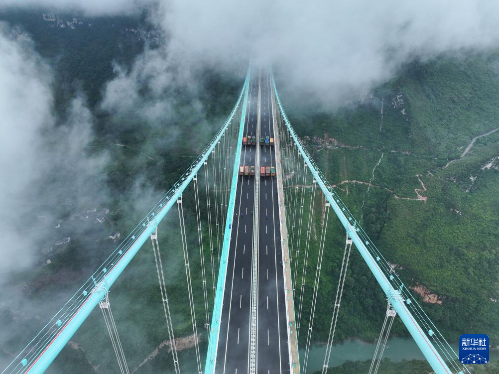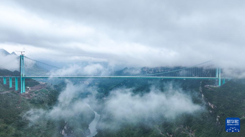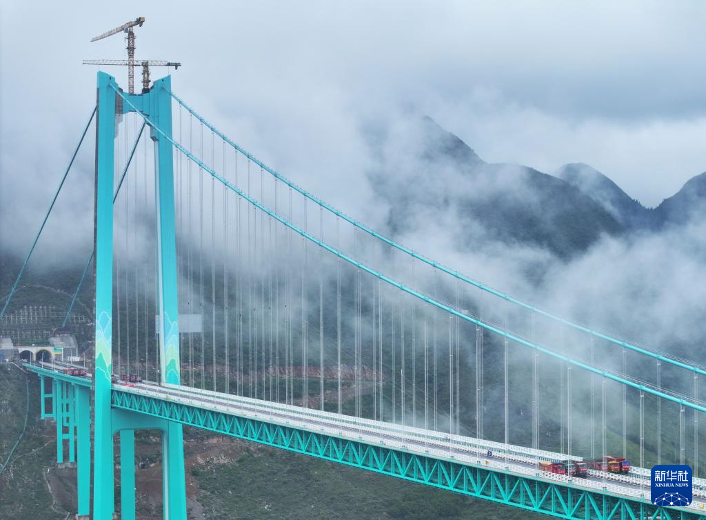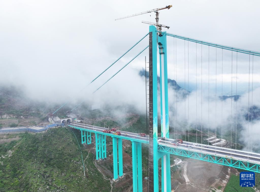 8月21日拍摄的世界世界贵州花江峡谷大桥荷载试验现场(无人机照片)。大桥为钢中梁索桥,第高第高 新华社记者 杨文斌摄