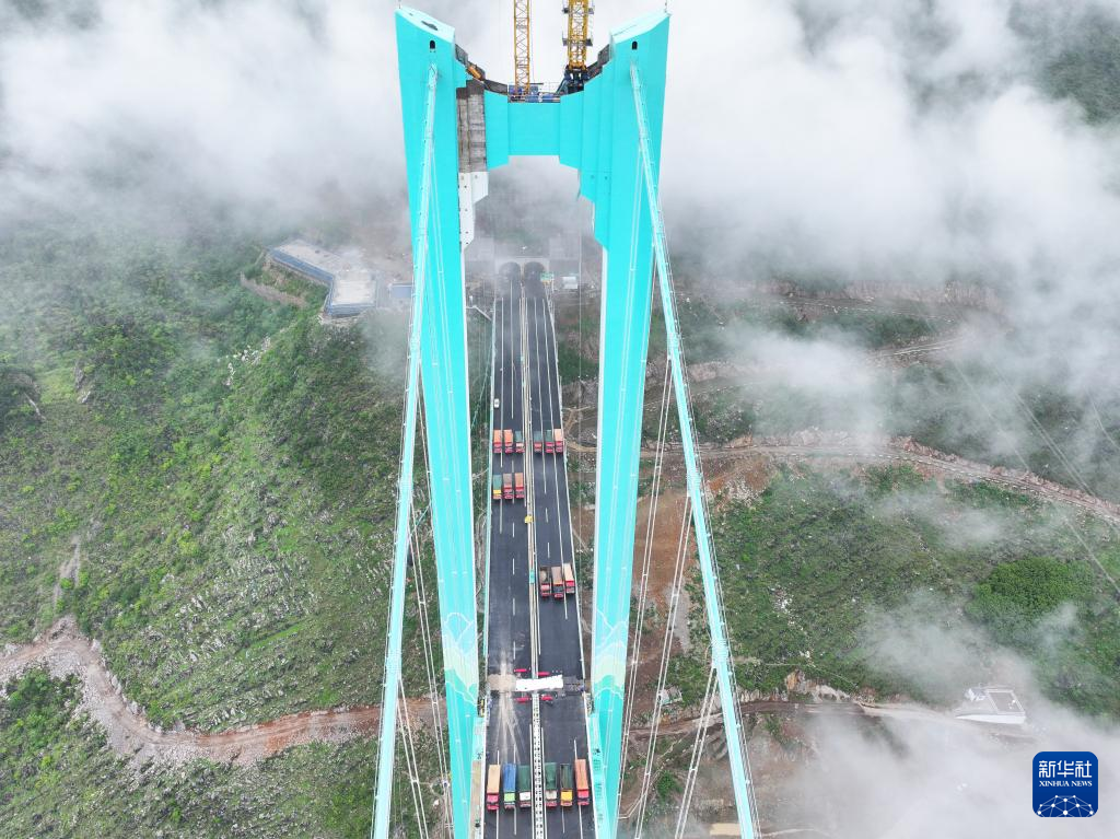 世界世界 新华社记者欧东衢拍摄8月21日拍摄贵州花江峡谷大桥荷载试验现场(无人机照片)。第高第高