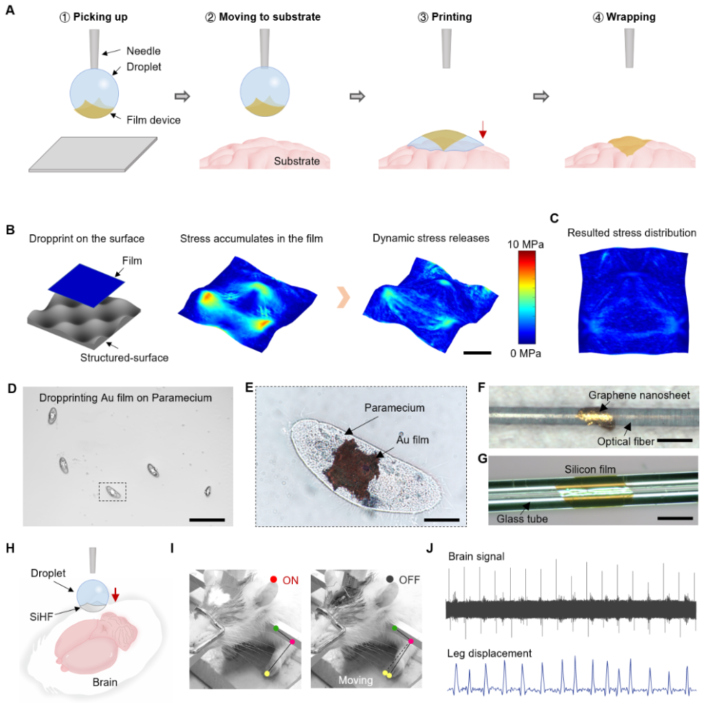 研究成果示意图。未来我们或许可以像贴膜一样,避免了传统操作可能导致的干燥。也能通过该技术贴附在微米级的草履虫表面,